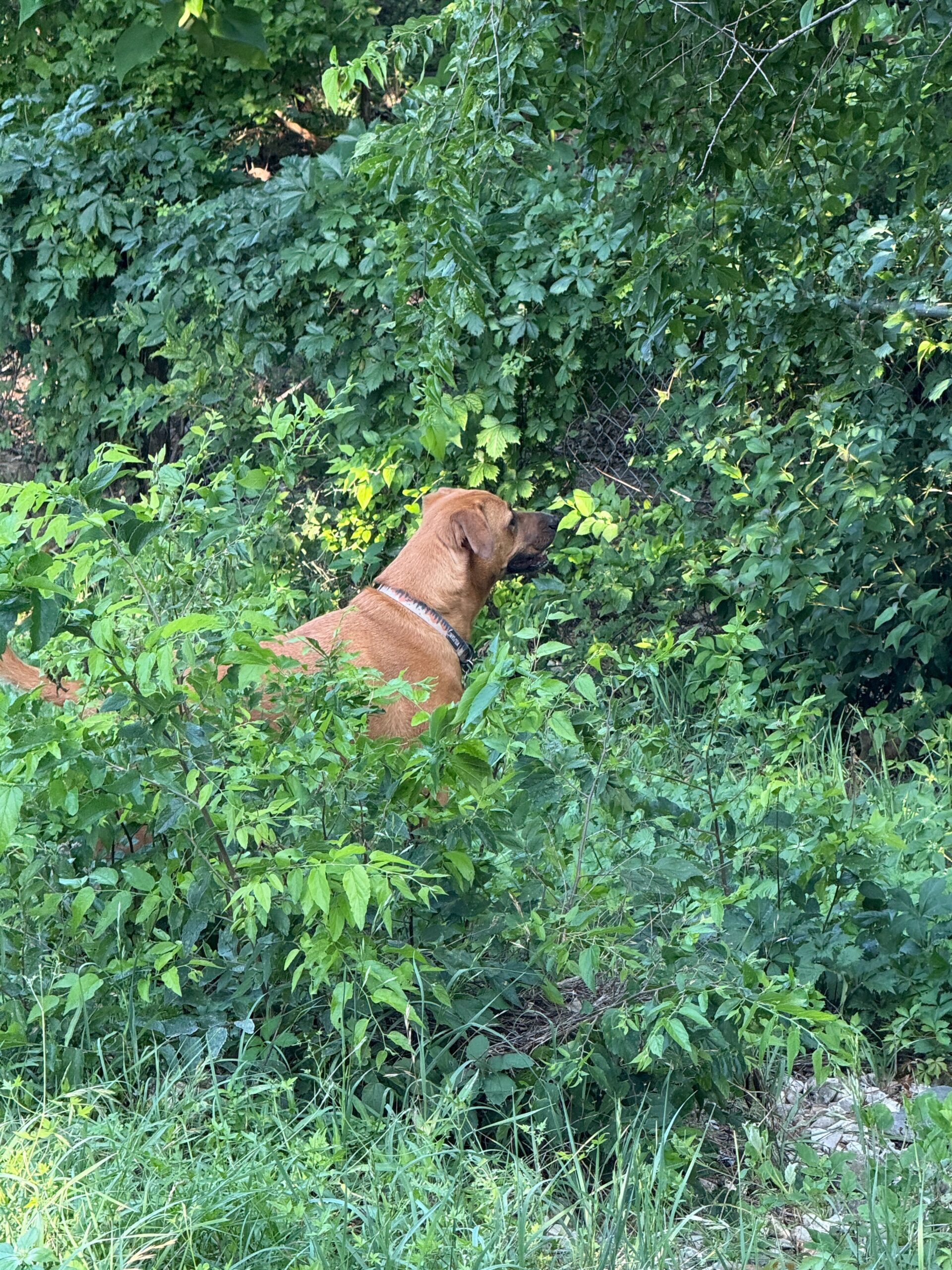 Things are pretty green in the Backyard.. here is Chloe…she is dog.. D o G