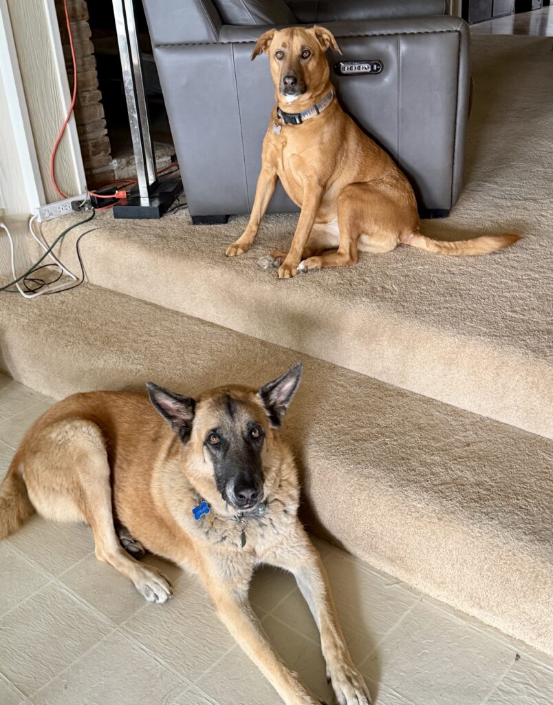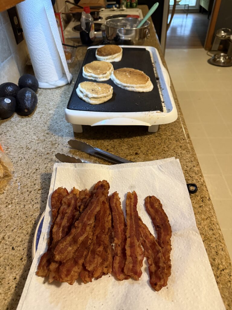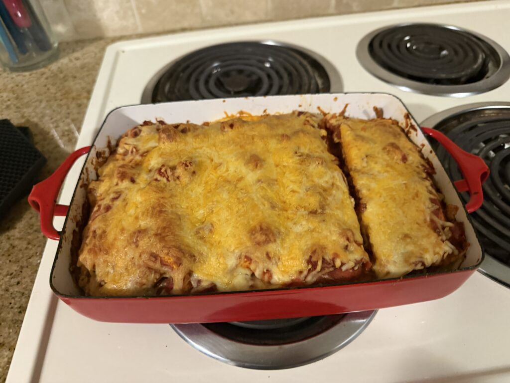 Indoor griddling on a rainy day.. Breakfast is my favorite Homemade wings from the Air fryerChili, and honestly this was one of my best batches ever.. Smothered Burritos.. like Enchiladas with way more filling! Chloe and Coburg.. always willing to help out..